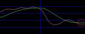 | MACD陽陰転では、MACDラインとシグナルラインの交差よりもより早いタイミングでシグナルが表示されます。 | ![]() |