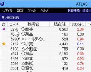 (註)銘柄名とコードは架空のものを使っています。実際のATLASの動作では正しい銘柄名とコードが表示されます。